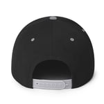This hat is structured with a classic fit, flat brim, and full buckram. The adjustable snap closure makes it a comfortable, one-size-fits-most hat.